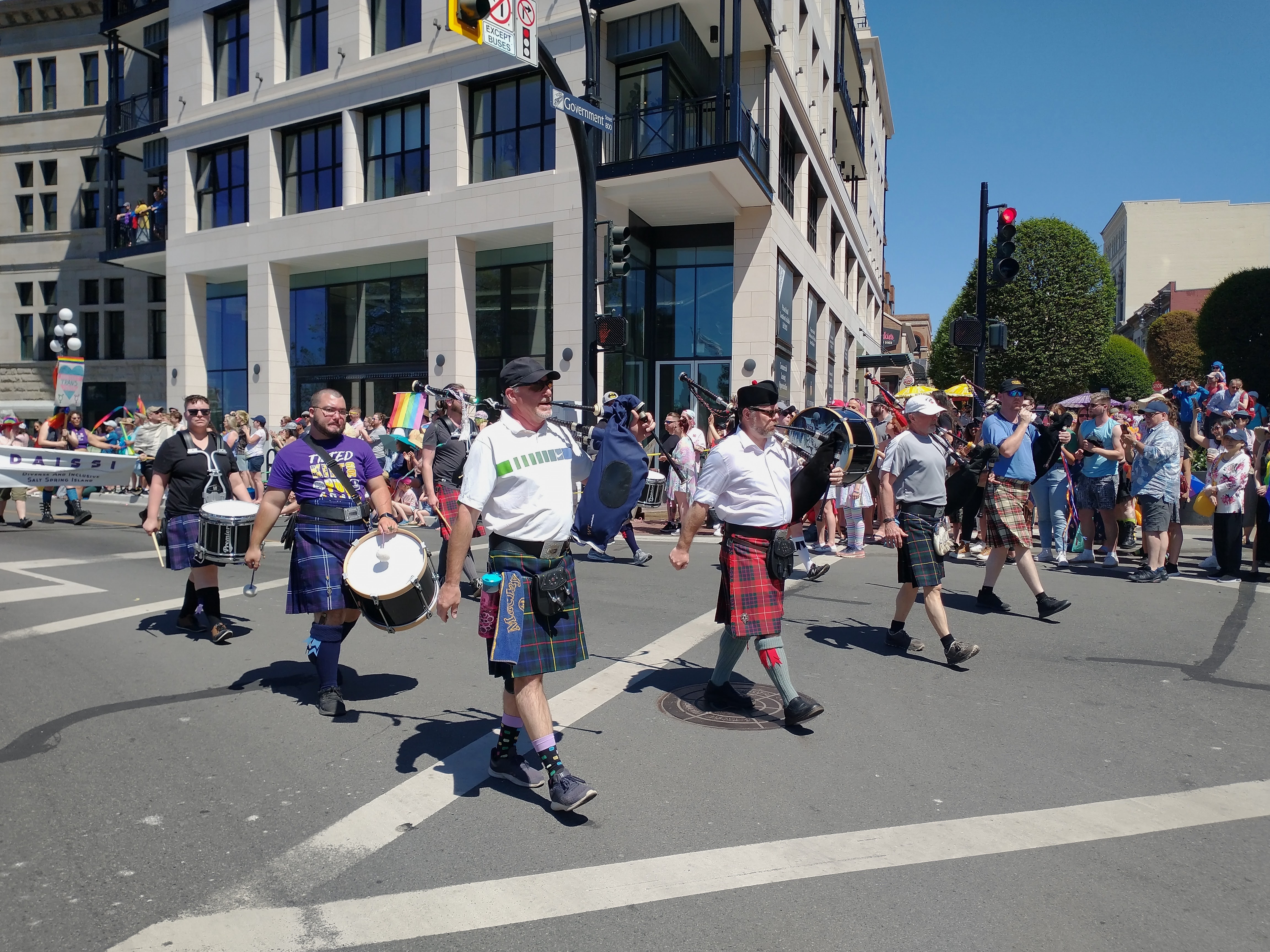 The Victoria pride parade is a celebration and recognition of LGBTQ+ folks and their fight for equality. CCPD happily joined the celebration in informal dress, allowing personal kilts and light clothing to combat Victoria's hot June weather!