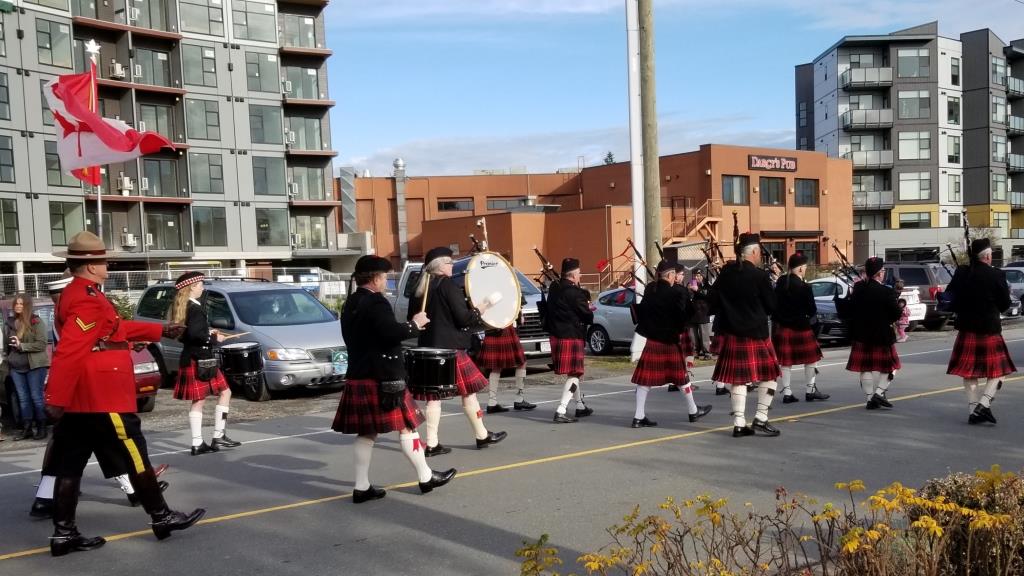 CCPD proudly participates in the Langford Legion's Rememberance Day ceremony, marching from the Legion to the Cenotaph and back. We also try to visit as many legions and halls that recognise the day, often playing a few sets at the Eagles Hall.